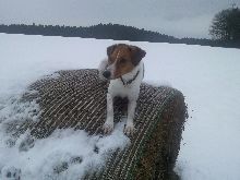 Timons Lieblingsstrohballen, da muss er jedesmal hoch und bleibt dann oben sitzen! Das macht Spaß.